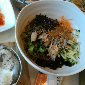 昼食も、済州ローカルの海鮮食堂でトッポギ(アワビがふたつも!!)をいただきました。