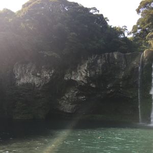 世界遺産を1日で回るなんていうのは無理な話でした。8時間で、効率良くポイントを押さえて回ってくださったので、目的のうち2つの世界遺産を体験し、2つは登山口だけ見たり、自然センターに行ったりして登れなくても見ることだけはできました。萬丈窟でも城山日出峰でも自然センターでも、日本語で説明してくださりながら、途中までお付き合いくださったり、自由行動の時間を余裕持って取ってくださったりしたので、結構な運動量もこなすことができました。移動中、海沿いの道を通って、エメラルドグリーンの海も見せて頂きました。