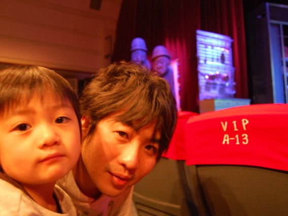 劇場でチケットをもらったら、早くから予約していたこともあり、なんと最前列の中央の席で驚きました。舞台が始まるとすごい迫力で、途中で舞台からキャベツや人参が飛んできたりして、一瞬も気を抜けない楽しい(?)舞台でした。途中でお一人の方が舞台でパフォーマンスをされるシーンがありましたが、言葉の通じない全ての人の心をつかんで、爆笑させるのはすごい技だと関心しました。途中で息子を舞台に上げていただいてパフォーマンスに参加させてもらって、記念品をもらったり本当に楽しい時間を過ごさせていただきました。また機会があれば是非見に行かせていただきます。ありがとうございました。