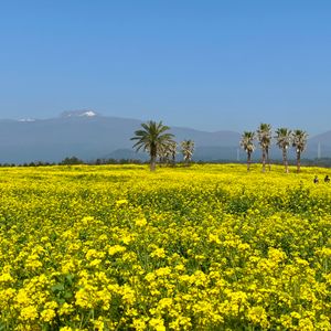 特にこのツアーで訪れる休愛里では、あたり一面に広がる鮮やかな菜の花畑(3-5月)が圧巻です。