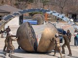 双眼鏡で北朝鮮の方々が見えました!