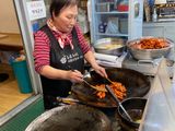 展望台カフェは、美味しそうなパンやケーキが並び地元の人達にも人気。市内を一望した後、西村の街まで、移り変わった街の歴史なども伺いながら丘を下り、丘の下の市場でガイドさんおすすめのトッポギを頂いたり、自分であちこちの店からオカズを選ぶお弁当もあったり、奥さんも大満足のツアーでした。