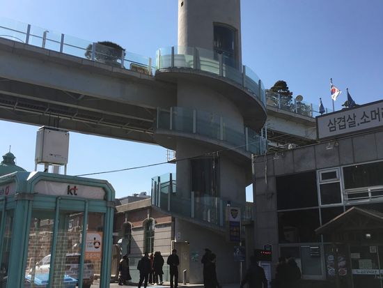 南さんと私だけということで、乗り物はほとんど使わず、二人でおしゃべりを楽しみながらのソウル市内散歩のようなツアーになりました。朝、待ち合わせの時間より早めに出発したので、ソルロンタンは行列ができる前に食べることができました。市役所前から、徳寿宮の古い外壁、古い教会や、ソウル初の女学校(梨花女子大学の前身)などを見学しました。思いつくままにいろいろと質問させてもらいましたが、南さんは時には逸話を混ぜながら解説してくださりました。ときには、二人でその場でスマホを使って調べものをしてみたりと、まるで旧友と街を探検しているような気分でした。南さんの歴史や言葉に関する知識の豊富さには頭が下がります。そして、今でもずっと勉強されている姿勢にもとても感化されました。