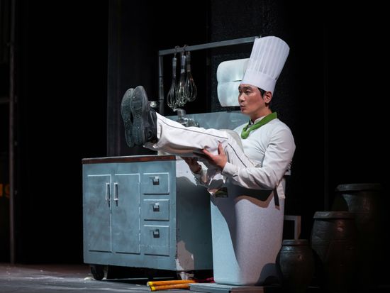 『ひとクセもふたクセもある4人のコックさんが、時間内に結婚披露宴の料理を作りあげる』というコメディ。斬新なアクションで、食器やまな板、包丁など、厨房にあるすべてのものが楽器に変わってしまうんです!そして、一番の見どころは、大量の野菜を舞台で切り刻むシーン!リズミカルで超スピードの包丁さばきは「見事!」のひと言です。鍛え抜かれた肉体、言葉を超えたコミカルな演技に、お子様からご年配の方までもう笑いが止まりません!