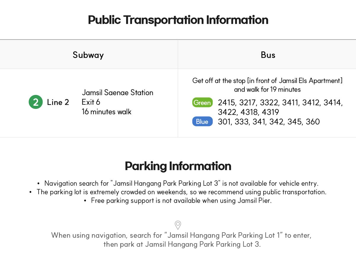 - 運航コース : 蚕室 ー 盤浦大橋 ー 蚕室コース