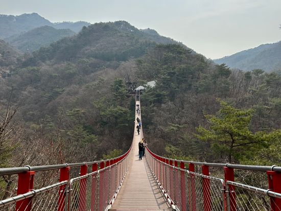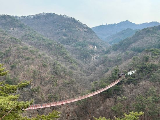 長さ150mの紺岳山吊り橋や雲渓瀑布を訪問。スリリングな体験と絶景をお楽しみください。紺岳山は朝鮮戦争の際には、国連軍の一員として参戦した英国軍のグロスター市出身の部隊が激しい戦いを繰り広げた場所です。坡州市は英国グロスター市出身の部隊員の献身的な死闘をたたえるため、吊り橋の別名を「グロスター英雄の橋」としています。