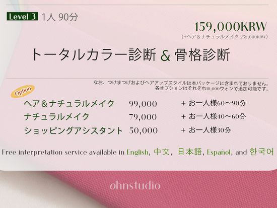明洞 フォトスタジオ「Ohn Studio」女子旅の思い出にも!韓国風フォト撮影&パーソナルカラー診断! ヘアメイクオプション選択可<8番出口すぐ/日本語OK>