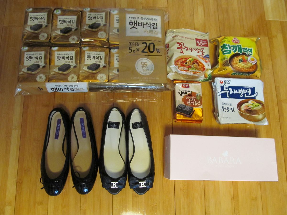ロッテマートへ案内:何を見たいですか?と希望を聞いてくれ売り場へ。お土産用に「海苔」をというと、迷うことなく海苔売り場へ行きました。しかし、種類が多くてとても選びきれない私たちにアドバイスをしてくれ、地元の人にも人気のものをカートへ。乾麺や調味料などを購入。あらかじめ用意したエコバックへ買い物したものを入れて店外へ、タイミングよく車がまわっていてすぐに、乗車。車がすぐ来るので荷物が多くても便利。