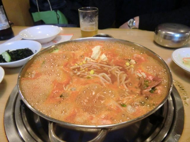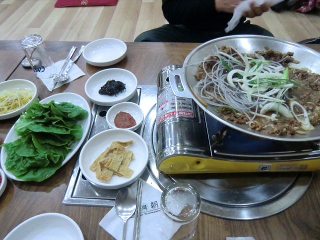 添乗員さんに教えていただいたミョンドン(明洞、ロッテ百貨店裏)の飲食街で地元のサラリ−マン達が昼食している焼き肉屋さんでおいしい韓国料理を満喫しました。キムチ5種類食べ放題、マッコリ−もおいしかった。安かった。日本の食事料金のおおよそ1/3位でした。