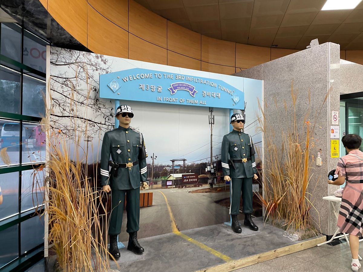 ガイドの李さんは日本語が堪能で歴史の知識も深く、とても勉強になりました。普段見ている華やかな韓国がまだ戦争中であることを再確認し、同じ民族が戦い、家族が離ればなれになってしまう悲惨さに胸が締め付けられました。第3トンネルを歩くのは想像以上に大変でしたが、貴重な体験ができ、頑張って行ってよかったです。お天気に恵まれて展望台からは北朝鮮がよく見え、道を歩いている人まで確認できました。