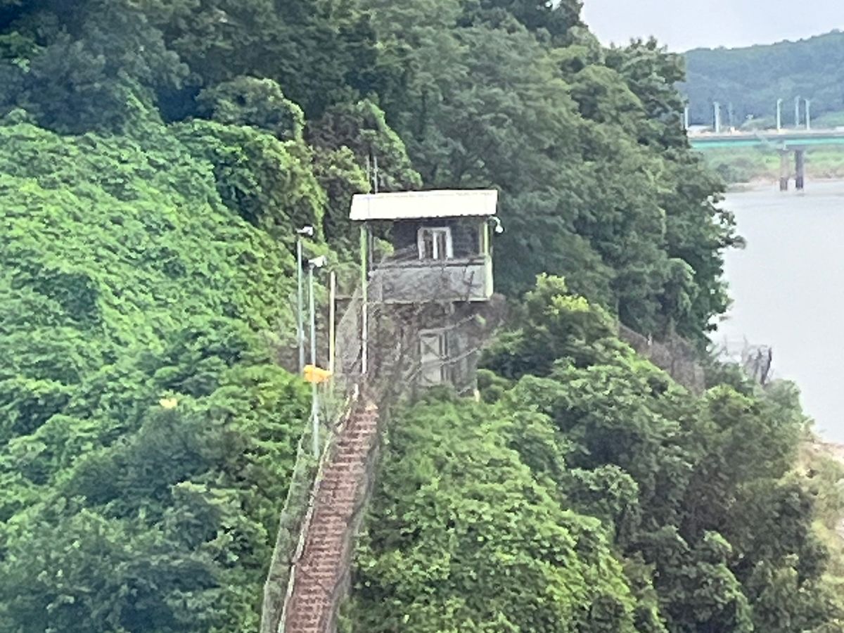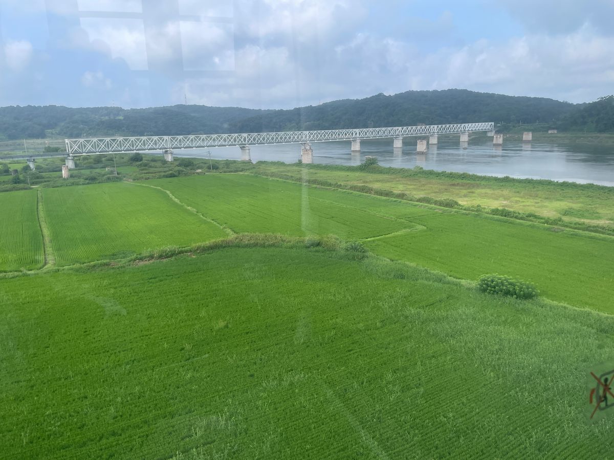 他団体も多くいて、トンネルへの案内も予定より遅れましたが、臨津閣で待っている時に案内していただいたゴンドラで臨津江を渡った時の景色や、下に広がる田んぼや畑はキレイでした。(トンネルは民間人統制区域の軍事施設なので、軍の許可がないと入ることができませんし、ルールは守らないといけないのです)