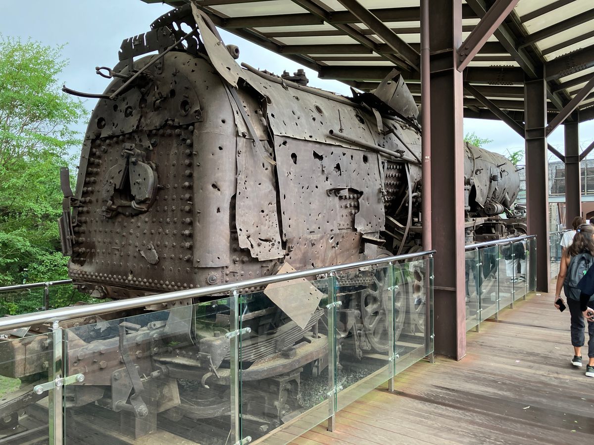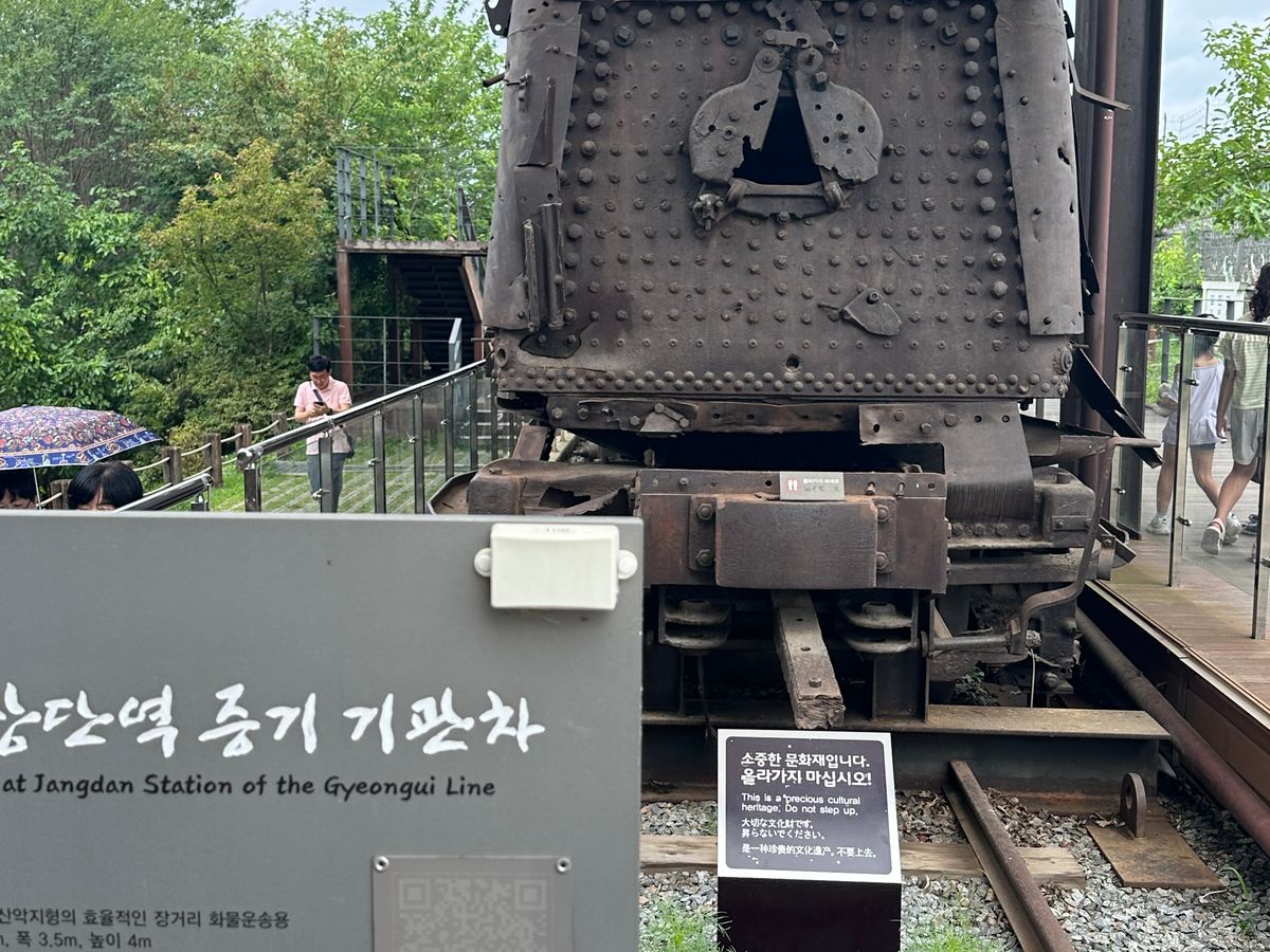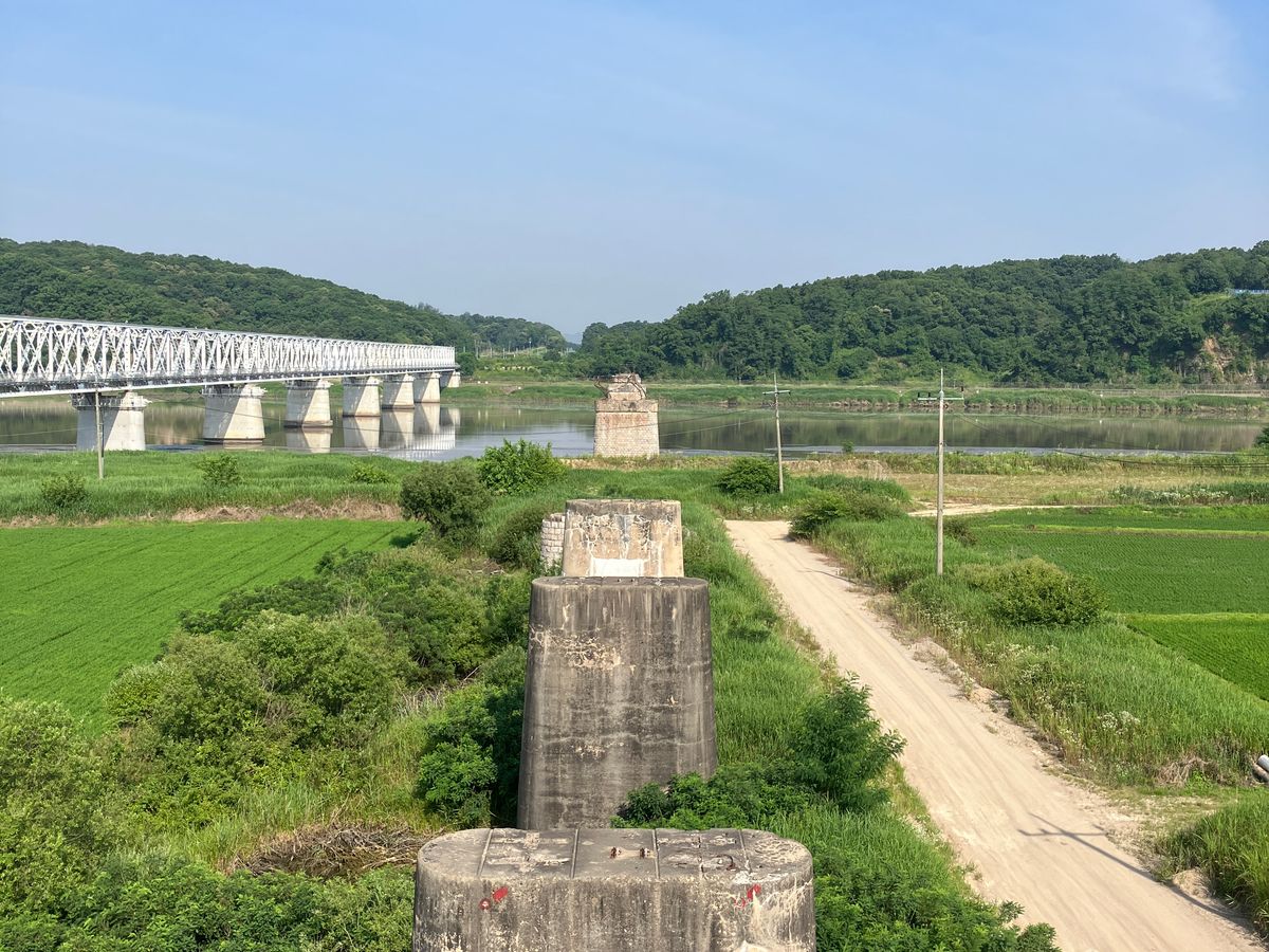 戦争中に銃撃を受けた電車、真ん中で崩れたままの橋、北朝鮮側から掘られたトンネルなど実際の歴史の痕跡に触れ、また厳誡警備の中でのツアーを通じて、かつて戦争がありそれがまだ続いていることを肌身に感じました。