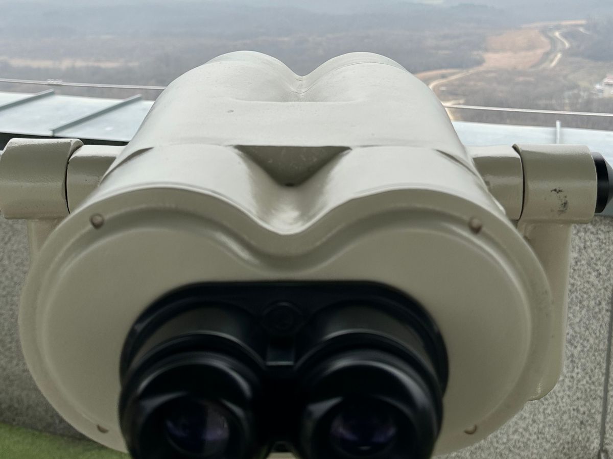 ガイドのホン ユサンさんが、日本人の私にもわかりやすく説明して下さいました。是非多くの人に参加して欲しいです。双眼鏡でみた北朝鮮は不思議な感じでした。写真は双眼鏡でみた景色です。晴れているともっと綺麗に見えるそうです