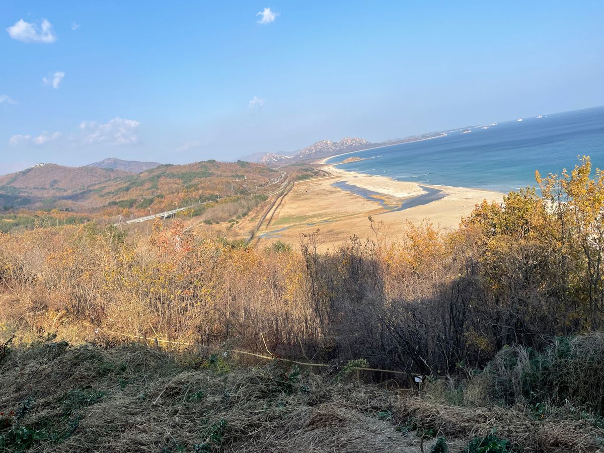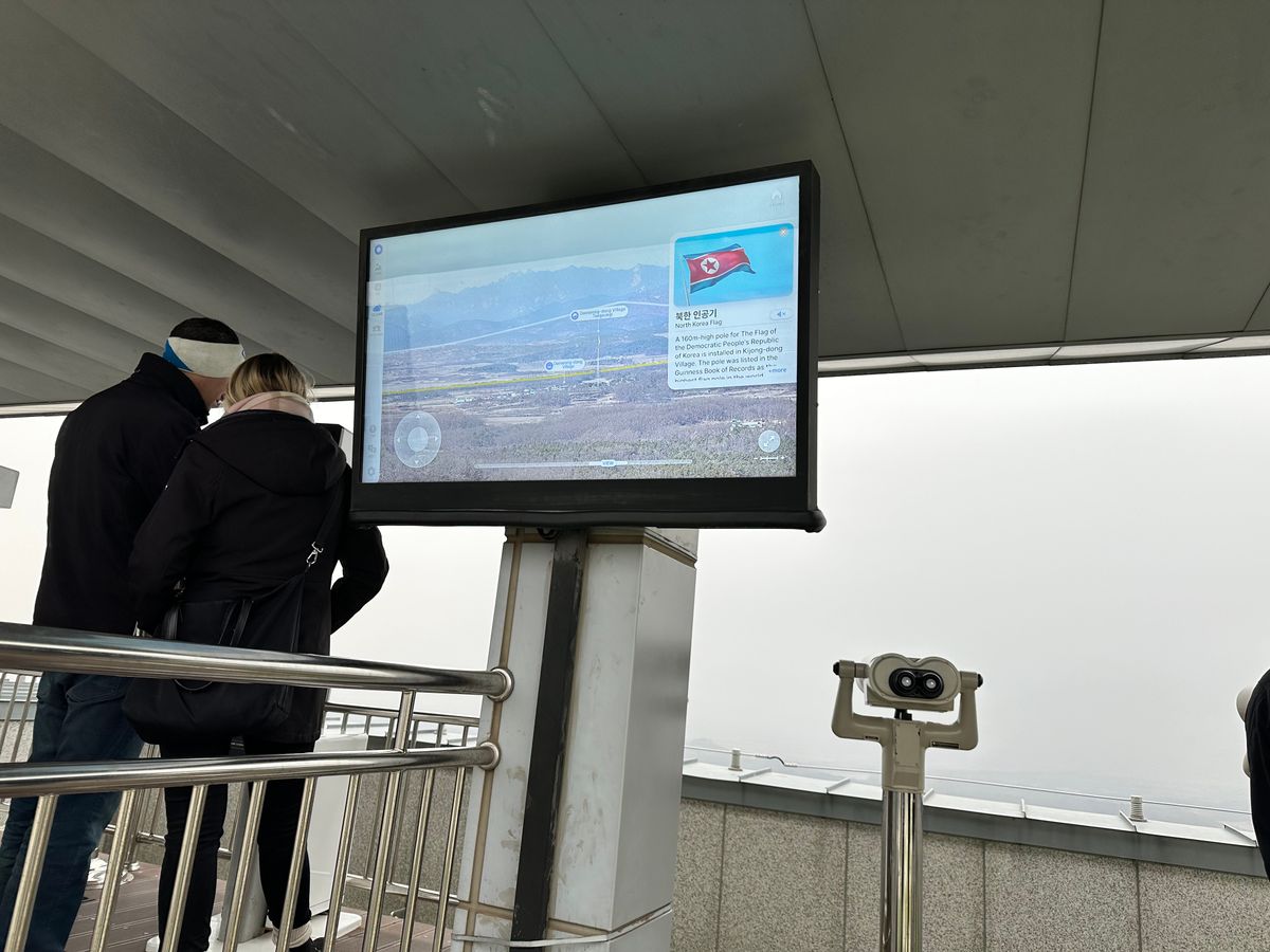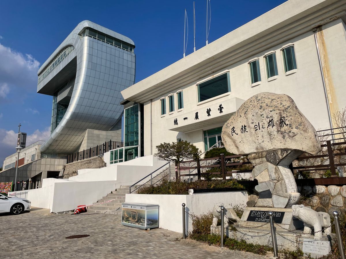 お天気もよく北朝鮮の国旗や、建物も見えて北朝鮮の近さを感じました。こんなに近いのに長年考え方の違いで監視しあい交流できないことが残念に思えます。平和の解決を望みます。