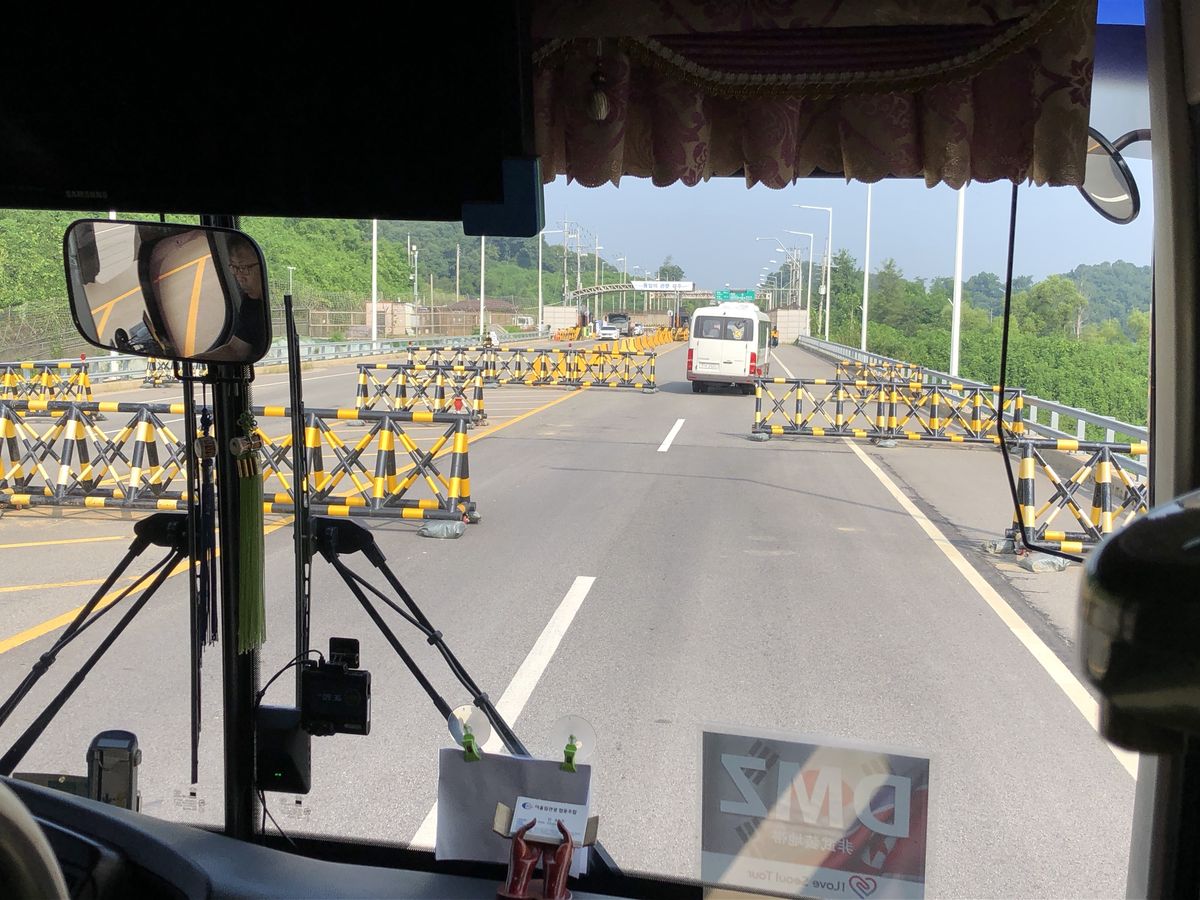 DMZに入るまでの道は、車のスピードが上げられないよう、障害物が置いてありました。途中、軍の方がバスに入って来られて、パスポートチェックを受け、各所にゲートがありセキュリティも厳重でした。国の領土を守る姿を間近に見られ、いかに日本が海に守られているか実感する事が出来ましたが、本当に日本の防衛は充分なのか改めて考えさせられます。