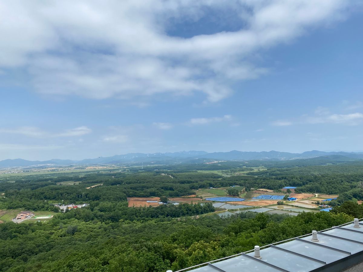 朝8時半に集合し、車で韓江のそばを通りながらまずは臨津閣へ向かいました。そのあとは統一展望台へ行き、屋上から北朝鮮が見えました。6月中旬でしたが、昼間の時間だったので畑仕事をする人たちがたくさん外に出ており、リアルな暮らしを見れて刺激的でした。