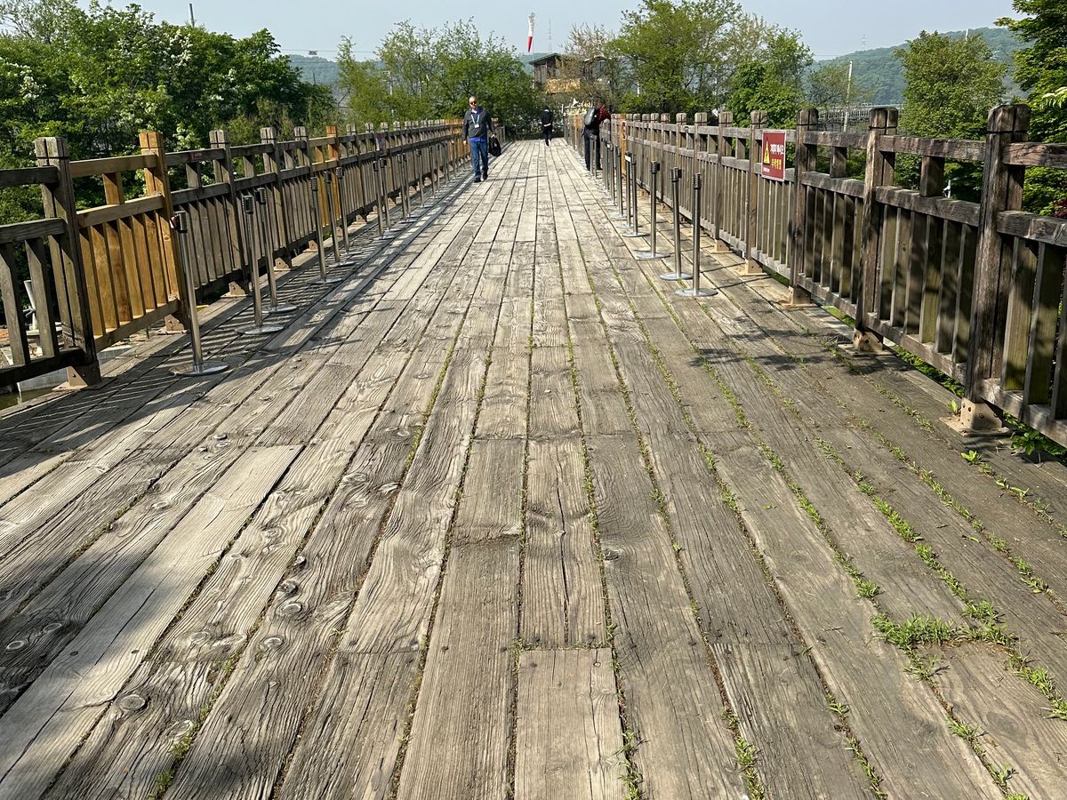 順番待ちの間に、自分でお金を払って、イムジン河を渡るゴンドラにも乗りました。これが歌に出て来るイムジン河なのかと感慨深かったです。