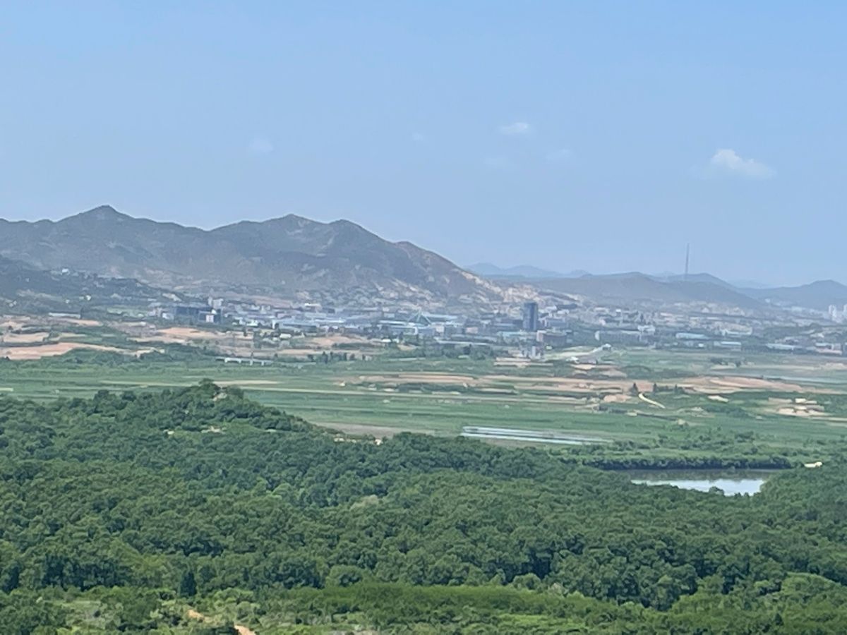 天候が良く視界良好だったので、北朝鮮の旗や看板、爆破で割れたビルの窓ガラスなどもしっかりと見ることができました。
