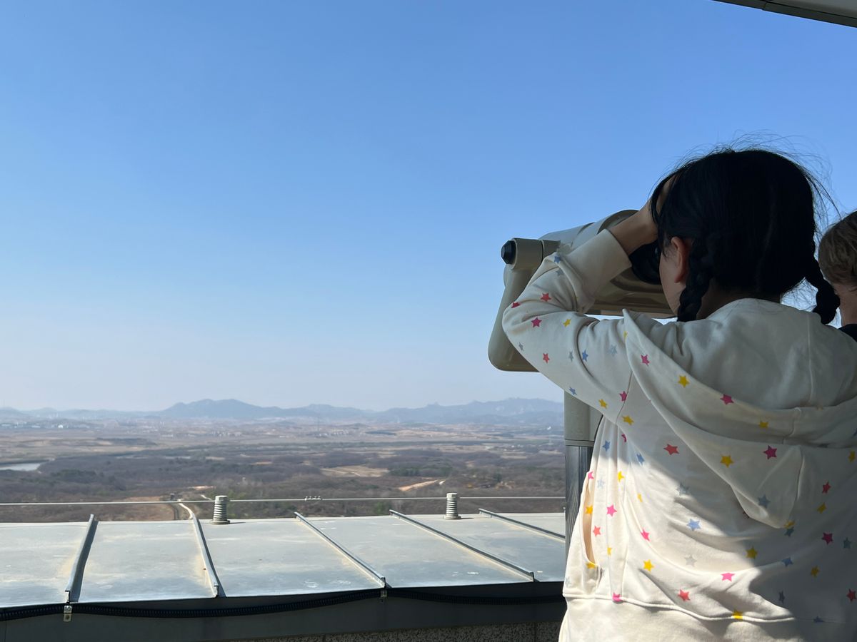 望遠鏡で北朝鮮の町がや人が見えました。国境警備の軍人さんはほとんどが大学生くらいでイケメンが多かったです!