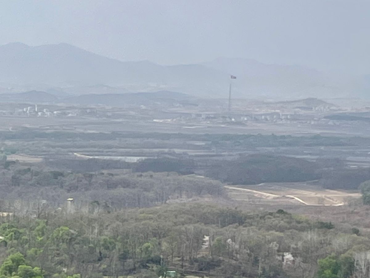 ・訪れた日は、数日前に雨が降り、空が澄んでいたので、かなりはっきりと北朝鮮の様子が展望台から見えました(ガイドさん曰く、そういう日はあまりないということでした)。