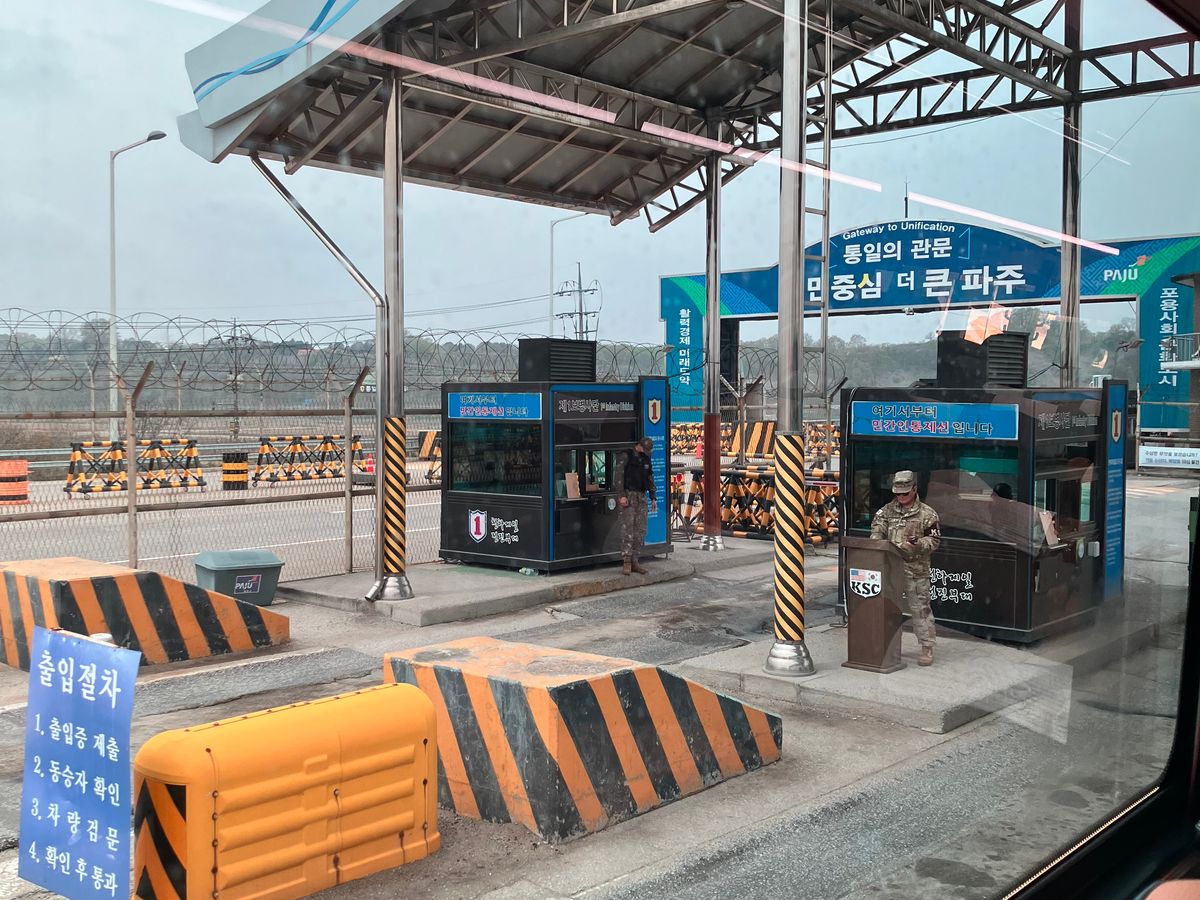 非武装地帯への見学は、今大人気で、そこへ行くまでのチケット?を取るために、早くに到着していないといけないらしく、人数制限を超えると、見学できないこともあるそうです。そのチケットの手配をするのは、ガイドさんなので、私たち観光客は、