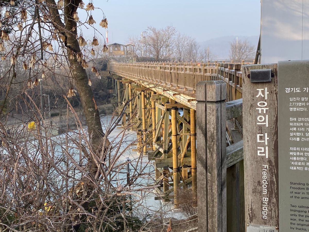 川が全て凍っている向こう側は北朝鮮ということを実感した。とても寒かった。