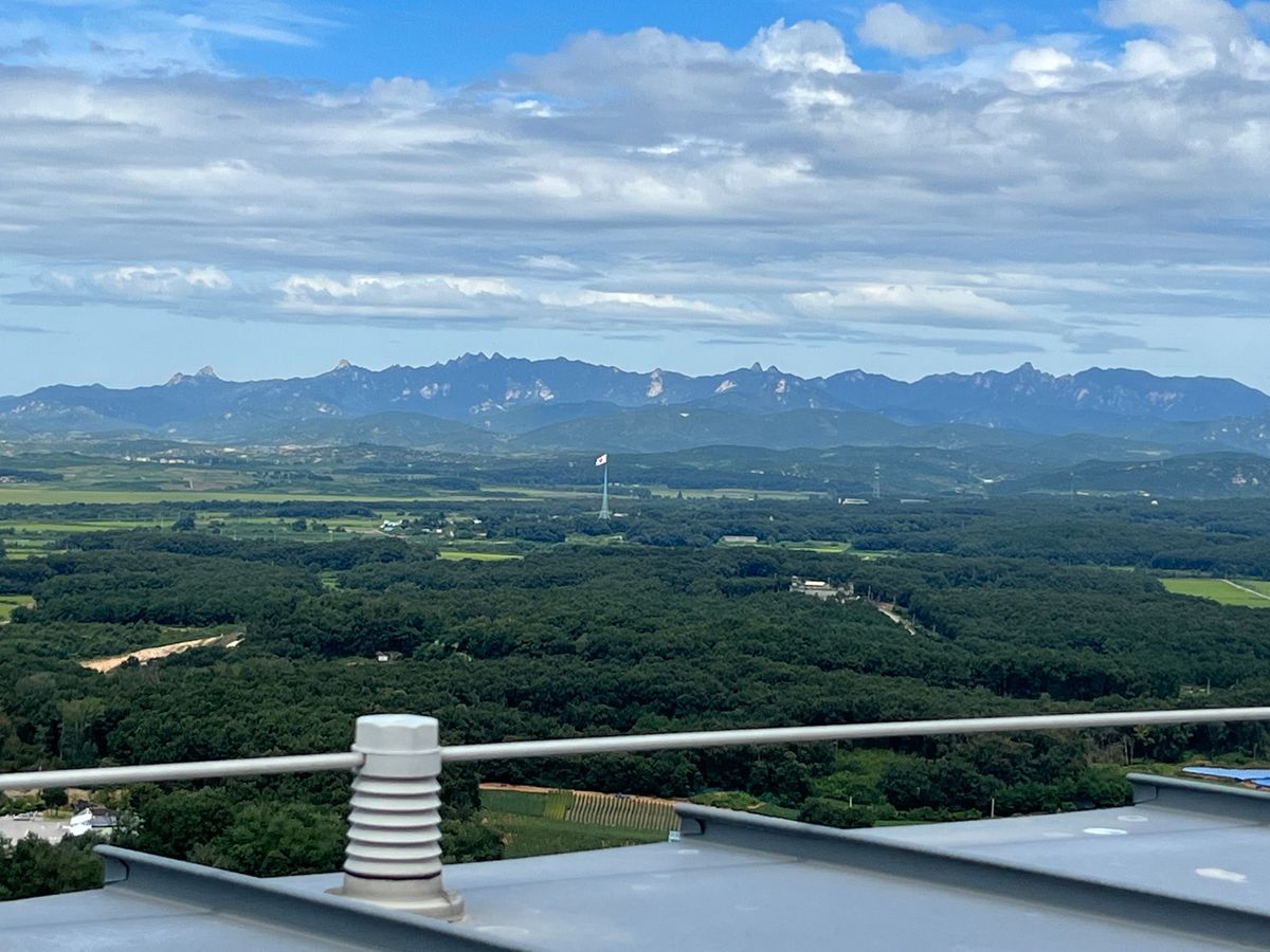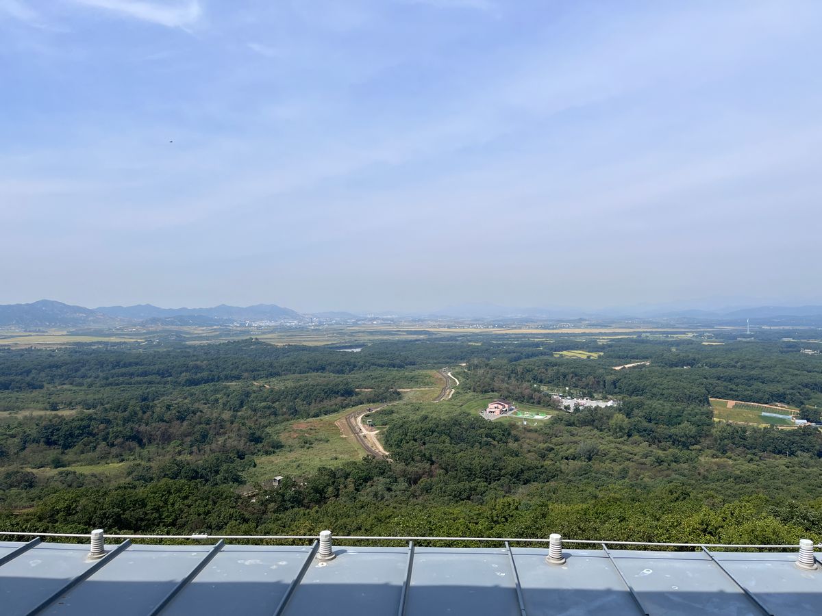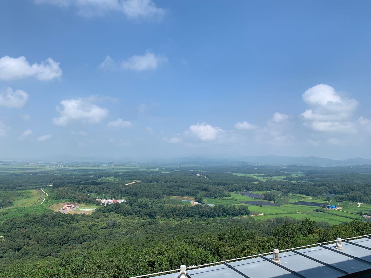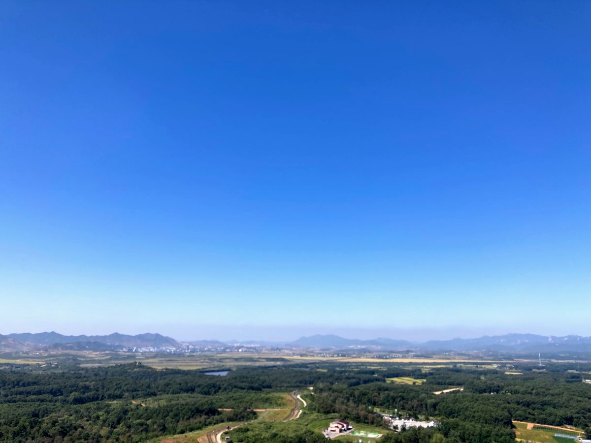 天気が良かったので北朝鮮の景色もよく見られました。人や牛が歩いているのがわかるほど。その一方でソウルから1時間の距離という現実が恐ろしく感じられました。