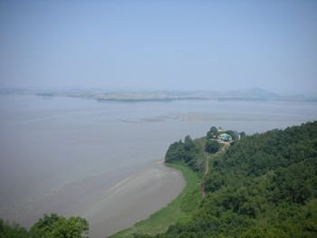 天気はあいにくのくもりでしたが、遠目に北朝鮮をみることができました。