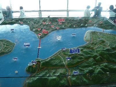トンネル内の坂のすごかったこと!添乗員のお兄さんが気遣ってくれましたが、基礎体力の貧弱な私は苦戦しました。見る価値は十分です。展望台から向こう岸の京城がよく見えました。河の向こう側の北朝鮮を感じました。