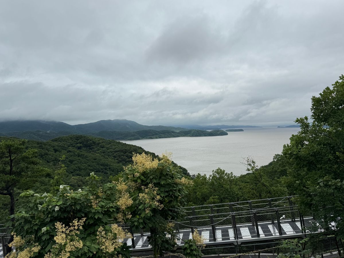 ソウル市内は大雨でしたが、スタバについてみると雨もやんで川の向こうに北朝鮮の山々や畑が綺麗にみえました!望遠鏡をのぞくと歩いている人もくっきり!往復の車内ではガイドのイムさんがずっと説明をしてくれ、とても楽しく勉強にもなりました!
