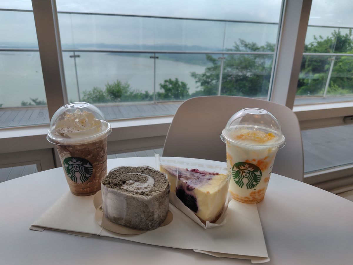 Starbucksでは1時間以上、ゆっくりと出来ました。北朝鮮も近くに見えました。