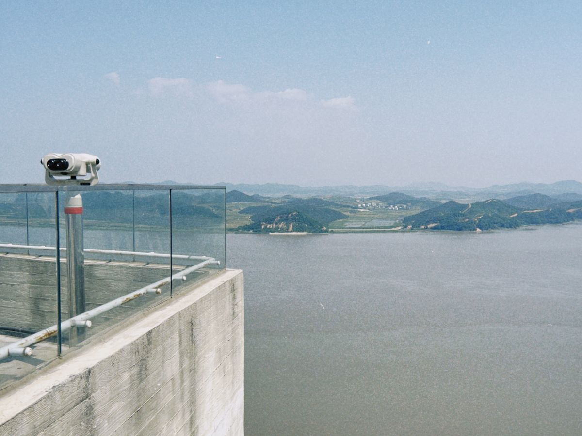 オペラグラスを持って行くと、スタバの店内からも北朝鮮を眺めることができます。