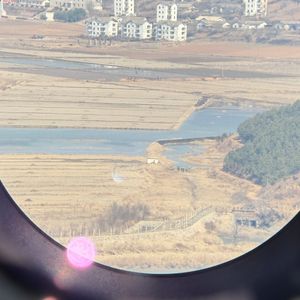 その後、新しい都羅展望台へ。坂道を2分ほど登った先には無料の望遠鏡があり、北朝鮮側を詳しく観察できます。目を凝らすと、バイクや自転車で移動する人々が小さな点のように見え、同じ空の下で生活している実感が湧きました。