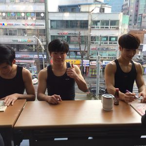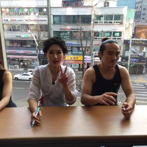 最初に日本語が話せるガイドの方から、今日は休日だから撮影がないので俳優の方はいません。でも撮影がない方がセットを見れるんですよと言われ少しガッカリしていました。現地に着いたら武神などに出演されている俳優のク・ボソクさんが案内してくださいました。セットの中を案内してくださり、台本も頂きました。ドラマのセットと、前日にしていた歌番組のセットも見させて頂き、見終わった後に俳優のチョン・ノミンさんが楽屋から現れ、お写真を撮っていただけました。日本語で挨拶してくださり、お話しもできてとても感激しました。今撮影しているドラマに出演されている女優の方も通られ、ものすごく綺麗でした。