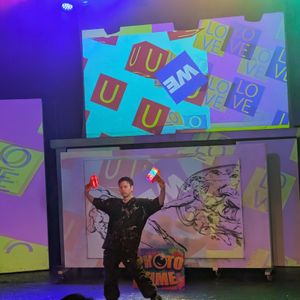 イケメンの男の子が踊りながら絵をかいていくのがとても楽しめました。 席は傾斜がついているので割と良く見えると思います。最初は太鼓を使って演奏しながらで上半身裸になった瞬間観客が沸いていました(笑)次に観客の一人を選んで絵を書いたりマイケルジャクソンの曲にあわせて踊りながら絵を仕上げて、それがマイケルジャクソンになるように組み合わせの絵を4人で協力しながら等バラエティに富んでいた構成だったと思います。最後に写真撮影タイムもありましたよ。