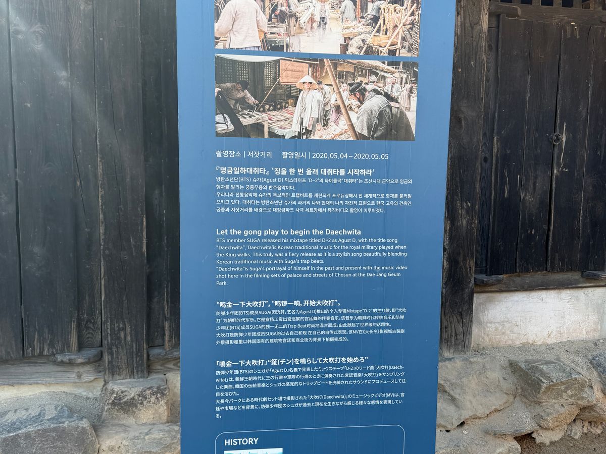 龍仁大長今パークでは、歴史ドラマを見たことのない私たちでしたが、有名なドラマの舞台(最近だと、暴君のシェフ)など丁寧に説明いただきながら、まわりました。