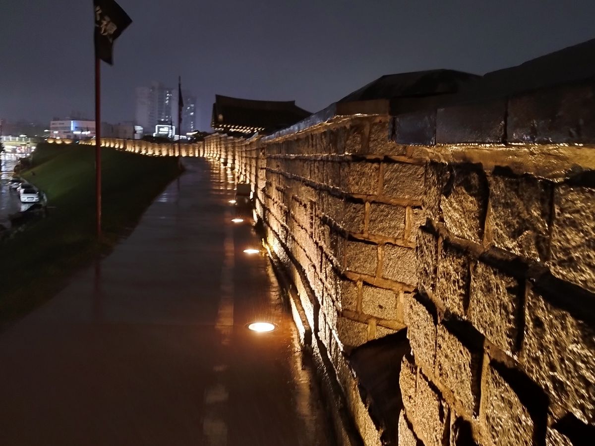 水原華城は、本当に美しくて素晴らしかった。たくさん、そしてアップダウンを歩くので、歩き易い靴は必須です。夜景も、あとから見た写真も素敵でした。恥ずかしがらず、たくさん写真を撮ったほうがよいです。自分で行くにはなかなか大変そうな場所、今回行けてよかったです。オススメのツアーです。