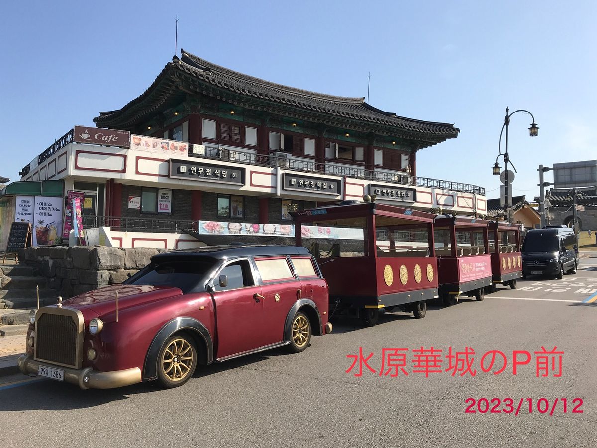 華城列車は運休でしたが、同じコースを車で回ってもらい、丁寧に解説してくださいました。見学中にこまめに写真も撮ってくださいました