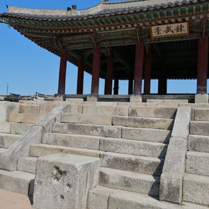 ガイドさんの歴史に関する知識が豊富で親切で日本語もお上手でとても楽しかったそうです。母はイ・サンのファンなのでそのドラマについてもお話しできて嬉しかったようです。写真は水原での撮影スポットで撮影したもので記念の写真になったそうです。