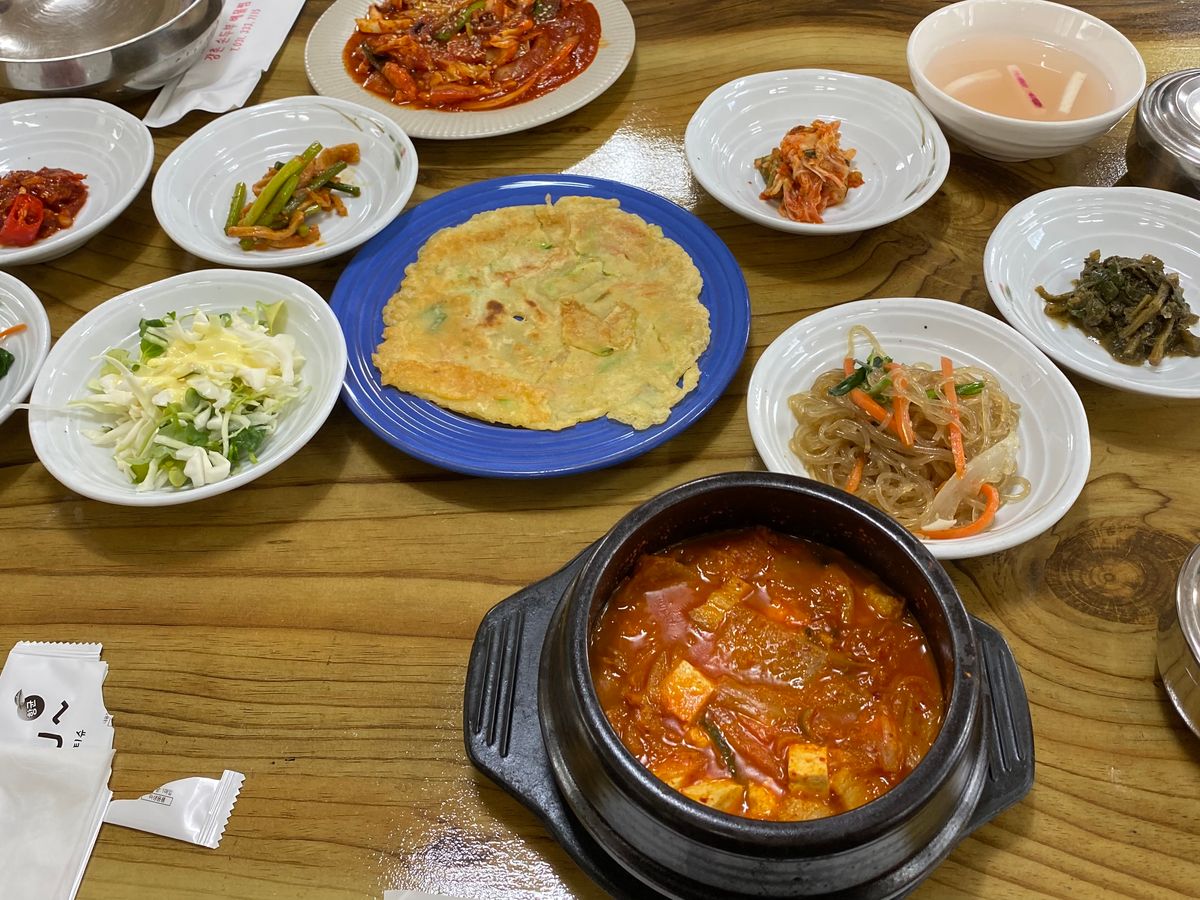 お昼ご飯はキムさんのおすすめ家庭料理に連れて行ってもらい、私はスンドゥブのキムチチゲを頂きました!