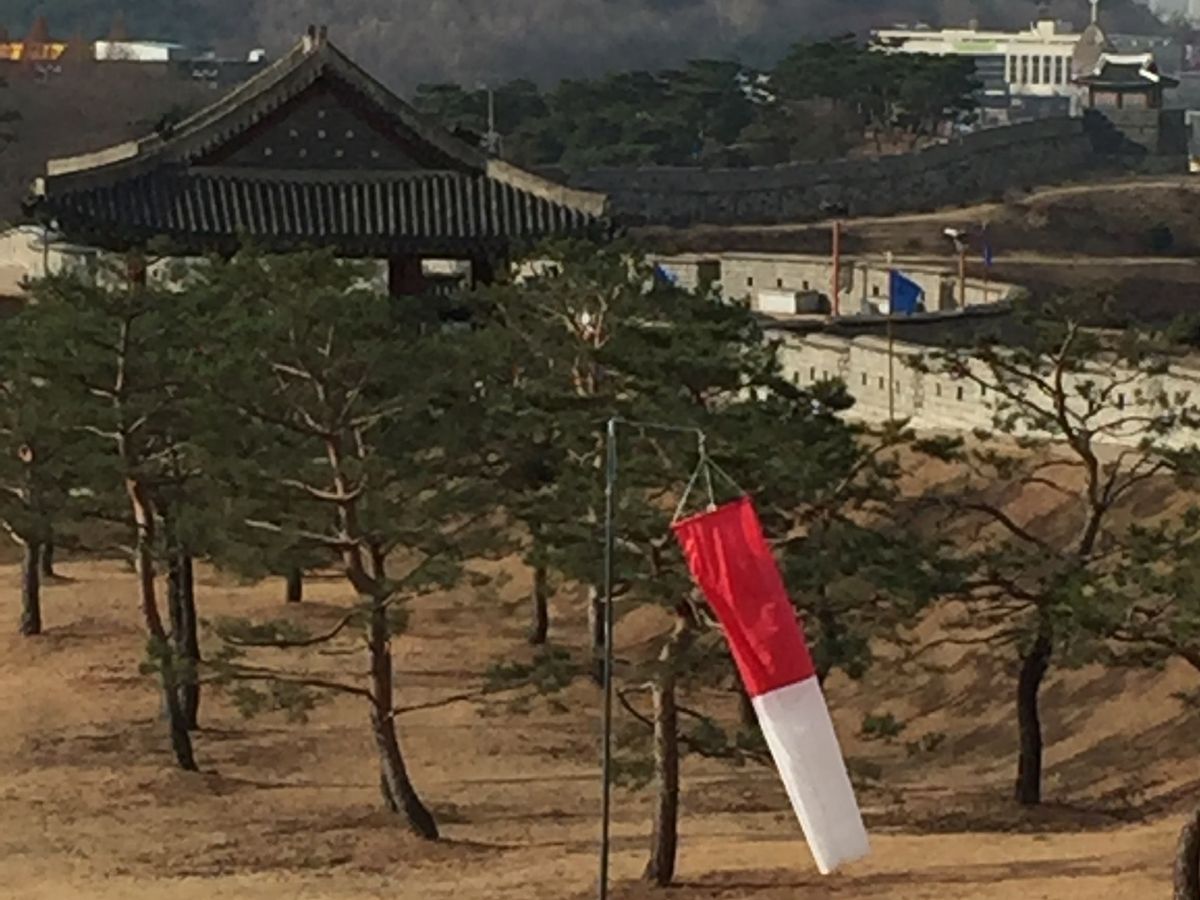 午後に行った水原華城、華城行宮もたいへん壮大でした。門と旗の色の関係等キムさんから興味深いお話を伺い、私たちの質問にも丁寧に答えてくださいました。また水沢の街にある若者に人気のドラマスポットも教えていただき娘は喜んでいました。