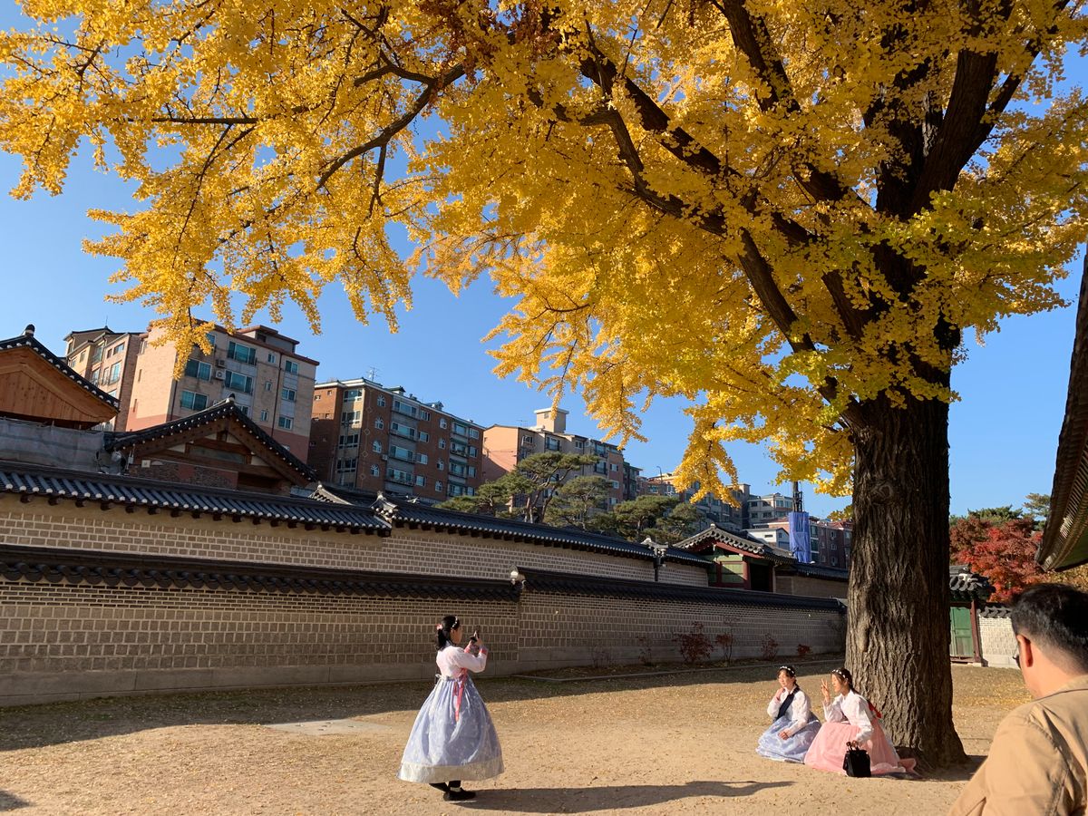 他の参加者さんがいなくて、ガイドさん貸しきり、タクシー移動の贅沢なツアーになりました。午前の早い時間のためか、昌徳宮も宗廟も人が少なく、じっくり見てまわれて良かったです。逆に北村は人が多すぎて…ガイドさんお勧めの高台の静かな場所を少し見て、早々に切り上げてもらいました。ガイドさんのタクシーの止め方(けっこう強引)を何度も見て、自分でも走ってるタクシーを止めて乗ることが出来るようになりました(笑)