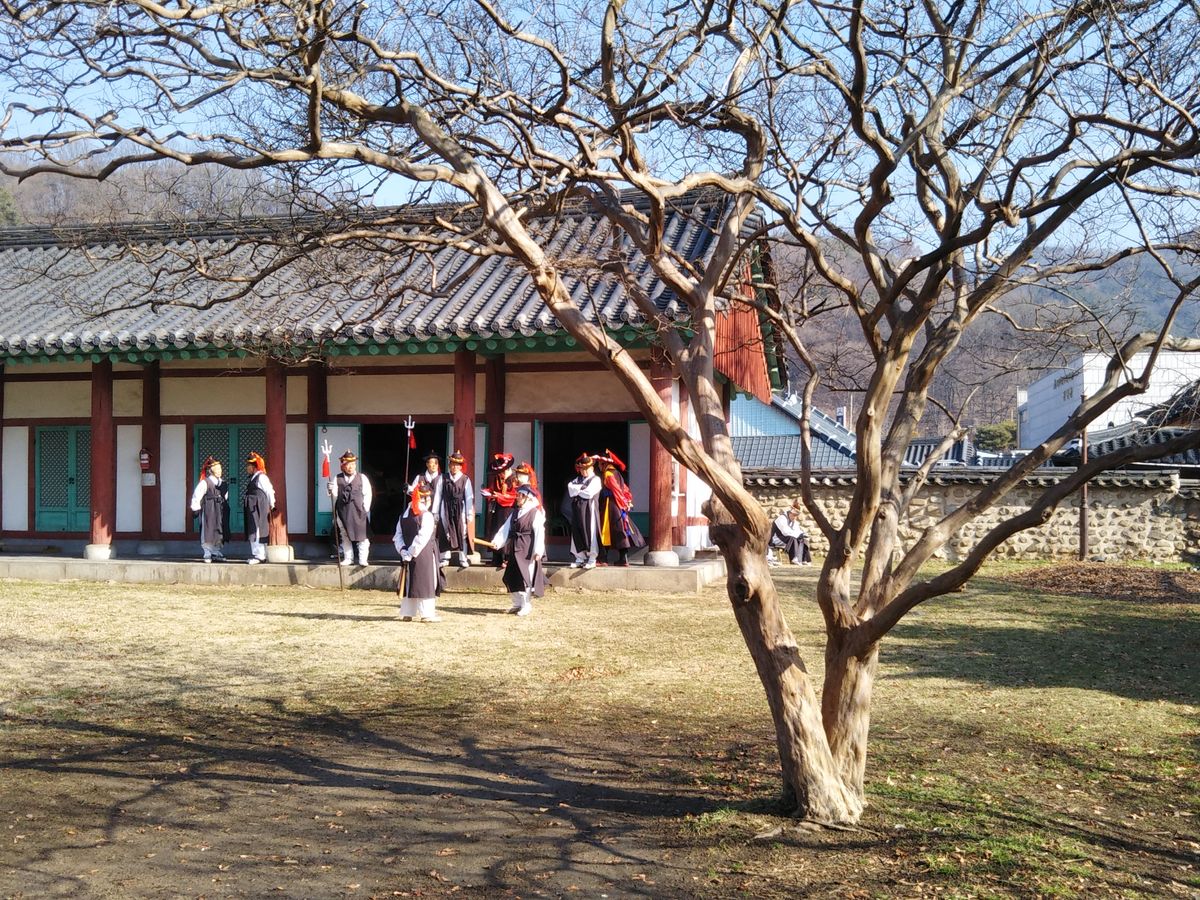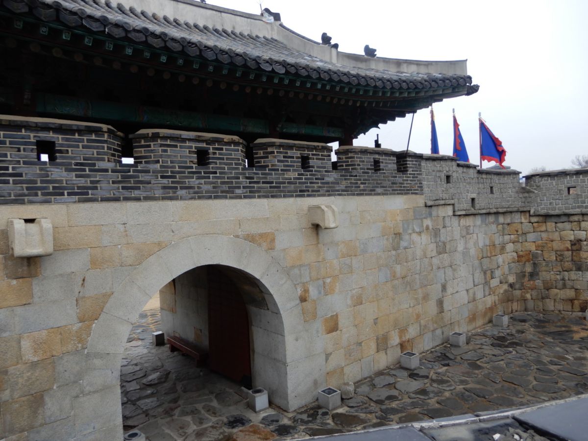 妻と二人でこの午前中ツアーに申し込みをしました。いつも集合場所へ集まるところ、宿泊ホテルまで迎えに来てくれました。4組で総勢7名で混載車でしたが、高速道路は優先レーンで順調に宿泊ホテルから1時間弱で水原華城に到着しました。今回金さん(女性)が案内していただき、歴史も詳しくカメラマンもお願いしてしまいました。天気も良く、腰の悪い私でも水原華城を見て回われました。水原行宮はそこから車で5分ぐらいのところにありました。丁度武芸の始まる時間で、気温もマイナス5度に達していなかったので見ることができました。行宮はコンパクトでイサンやチャングムの撮影場所だったそうです。ソウルの景福宮からここまで、6千人のお付の方を連れて来たのは驚きと、鮮明に文章とか画が残っているのも驚きました。日本の内閣府にも見習っていただきたい。帰りも順調で仁寺洞で降ろしてもらいました。電車とバスで行けないことはないですが、ツアーガイドの説明が良かったので安く感じました。
