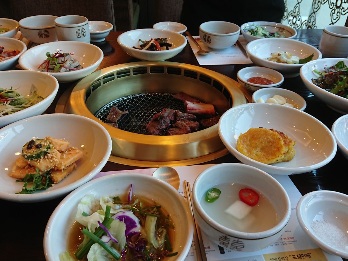 佳甫亭では、事前にツアーコリアさんに予約をお願いし、韓牛カルビランチに韓牛生カルビを追加しました。味付けカルビも美味しいですが、お味のついていない生韓牛もとっても美味しいのでわがまま言って事前に予約をお願いしておきました。もちろん、美味しかった!満足満足!ですよ。