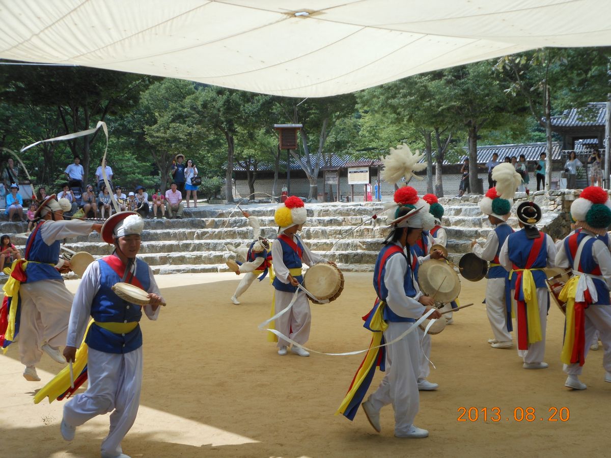 水原華城・・・世界遺産なので一度は行くべきだと思うのですが、2度はいいかな。と思うところでした。トロッコ?みたいなのに乗っての移動だったので、水原華城自体はそんんなに疲れずに見ることができました。友人はこのトロッコの時、どちらかの端(4人1列みたいな並びで両端の方が、良く景色が見れるため)が良かったらしいのですが、ガイドさんが端に乗って、友人は真ん中になってしまったので、不満だったそうです。また、写真を撮ってくれるのですが、全てピンボケだったため、少し残念でした。伝統武芸はそんなに期待しないでみた方がいいと思います。伝統武芸より、韓国民俗村でみた頭を振ってリボンを回す芸の方が面白かったです。