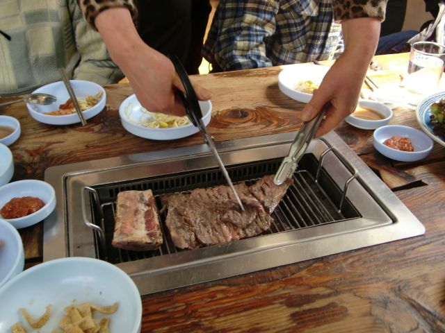 事前に体験談を読んでいたので、昼食は絶対焼肉を自分からリクエストしようと決めていました。朝の移動の車の中ですぐにガイドの方から希望を聞いてくださって、予約までしてくれました。お店についたらガイドの方は離れて1時間ほど自由に。(行ってみると、日本人団体ツアーらしき人がたくさんで、そちらはツアーメニューのようでした。)焼肉おいしかったです。