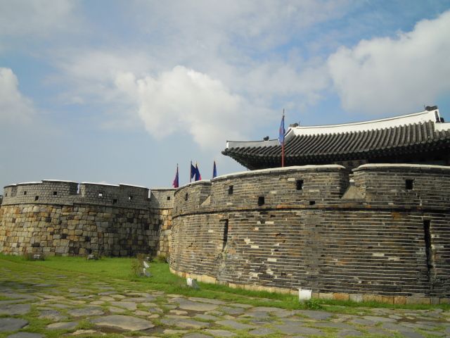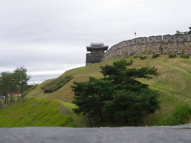 ずっと前から行きたかった水原華城。出国日、台風のため飛行機が欠航になり当初の予定をキャンセルしました。そして日程を組み直し、水原華城にも無事行くことができました。しかし、当日のお天気は大荒れ。豪雨で傘をさしている意味がないぐらいの雨風・・・。そしてすごく寒かったです。服がしぼれるぐらいの大雨、ガイドさんは雨は仕方ないよっておっしゃっていましたが、ほんと風邪ひくレベルでした。水原華城はすばらしかったですが、ガイドさんがもっと親切なかただとよりよかったです。バスの中でランチやサウナの質問なさったかたがいらっしゃいましたが、ちょっと不親切な対応でビックリしました。あとバス車内で水原華城に関するお話をしていただきたかったです。ガイドさんは携帯されていて水原の説明なしにも驚きました。雨のため伝統武芸24技も中止でした。残念でした。春に再び水原華城を訪れたいです。