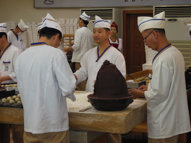 皇南パンは、親指くらいの饅頭です。店頭では1個売りもしているそうですが、(1個700ウォン)混雑していてゆっくり買う雰囲気ではないので、何個欲しいとガイドさんに伝えて買ってもらうといった感じでした。駅では箱売りしていました。