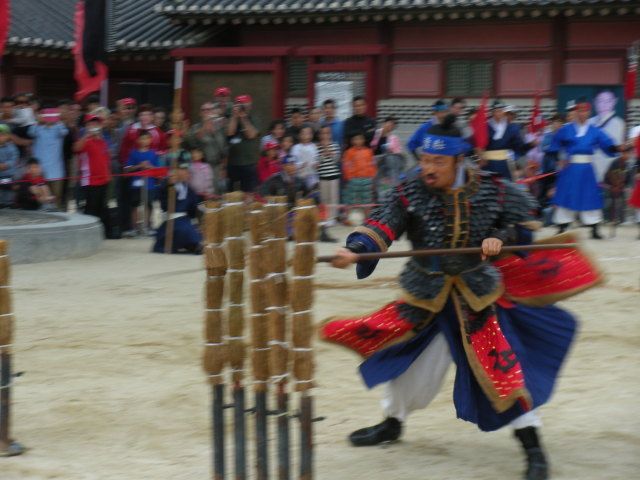 このツアーで一番見たかった伝統武芸が雨のため中止になって、本当に残念でした。ただ、韓国民俗村で、綱渡りや打楽器の演奏が見られるように、ガイドさんが時間調節をしてくれて、とてもよかったです。