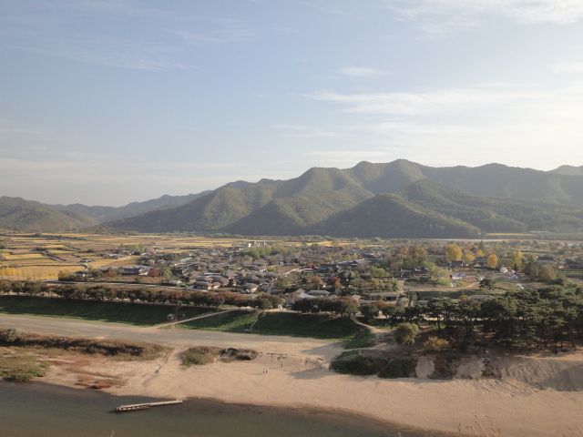 李王朝時代の柳成龍先生の書院は、本当に時代劇にでてきたものと全く同じで、歴史を身近に感じることができました。書院の前には、小高い山と皮と砂浜が広がり、これも素晴らしい景観でした。